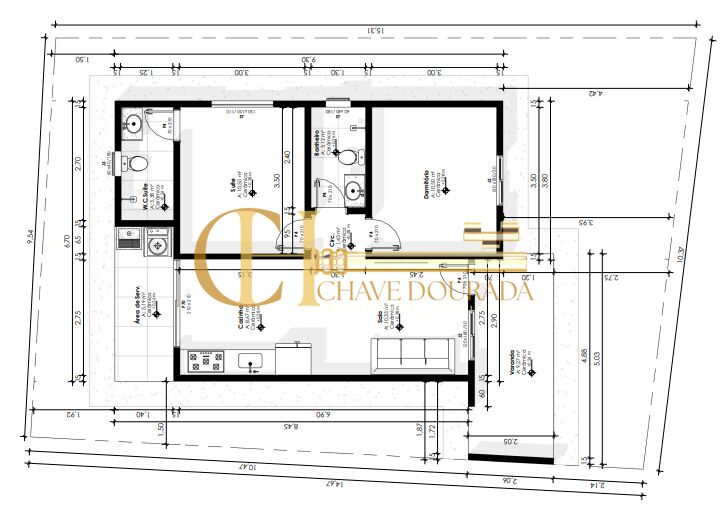 2 Dormitórios, sendo 1 suíte2 Banheiros1 Vaga1 Cozinha1 Sala de estar1 Área de serviço